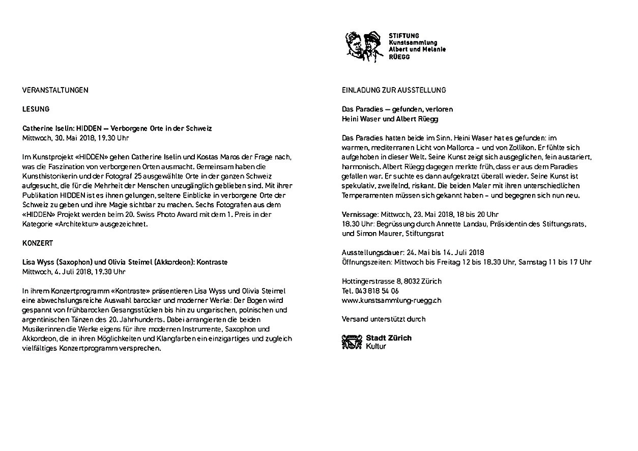 | Mit dieser Website versuchen wir, einen Überblick auf das Werk Heini Wasers zu geben, das er in über 70 Jahren geschaffen hat. Für die Leute, die seine Bilder bewundern und lieben, für die junge Generation, die seine Bilder erst kennenlernt und für zukünftige Generationen. Sie können hier seine Liebe zur Zeichnung und Skizze erkennen, die Art, wie er das Aquarellieren beherrschte und die Ölbilder, welche uns durch die Schweizer Berge über Griechenland, die Toscana und Provence bis nach Spanien und Portugal führen. Wir wollen Ihnen hier die Gelegenheit geben, den Künstler und sein Werk in Erinnerung zu behalten oder neu zu entdecken. Dies ist unser Beitrag an den Künstler, den wir liebten und bewunderten. Wir freuen uns über Ihre Beiträge, Kommentare oder Fotografien und werden diese gerne auf der Website lassen. Sie können dafür die Rubrik Kontakt oder Gästebuch benützen.
